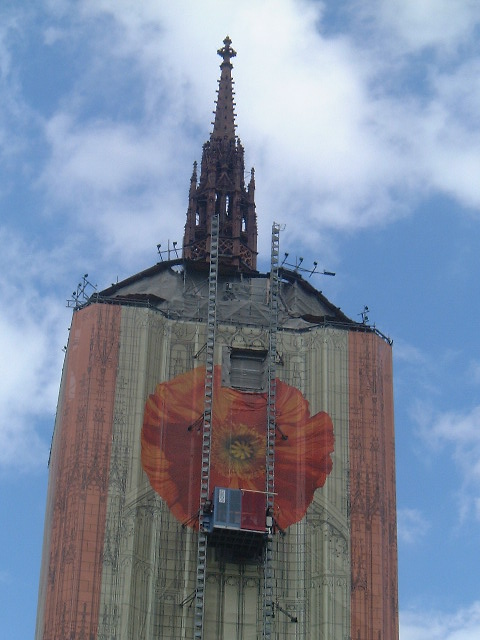 残念ながら、大聖堂は修復中でした。可愛らしい幕で覆われちゃってます。