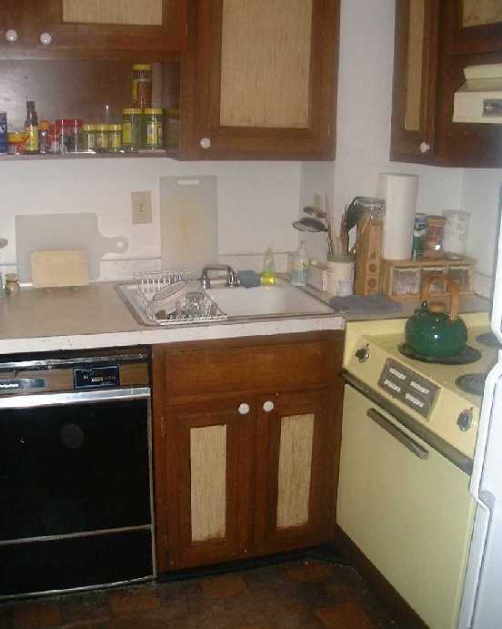 そのキッチン。散らかってる〜(笑) 棚だけはたくさんありますが、何せ位置が高い! 身長164cmの私でも、ちょっと高いなーと 思うくらいです 正面左下の黒いのが食器洗い&乾燥機☆ 来たばかりの頃、専用洗剤を使うのが分らず 普通の食器用洗剤をいれて、床中をあわあわ にしてしまいました でも、大丈夫。 土足エリアだもん、ここ。(^-^)おっほっほ なにかと散らかるキッチン、土足って 意外と便利です |