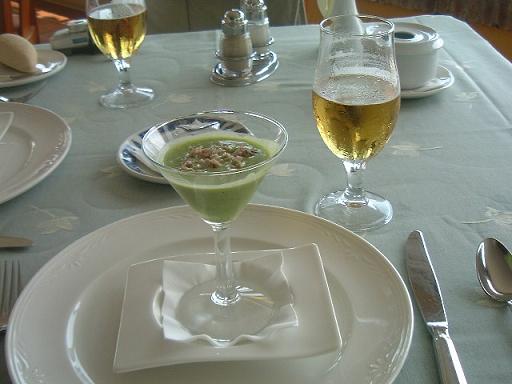 おとおしの冷製ポタージュが来る前に、ビールが半分蒸発!(^n^)