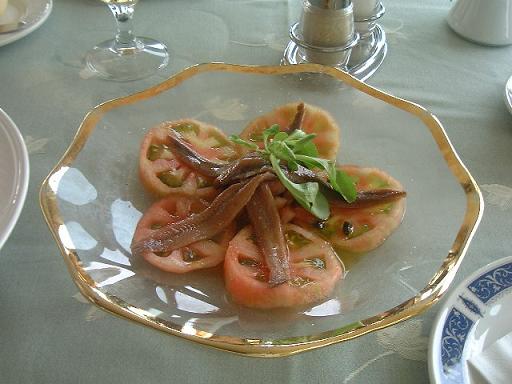 トマトとアンチョビのサラダ/あさりのガーリックバター/ロブスタースープ