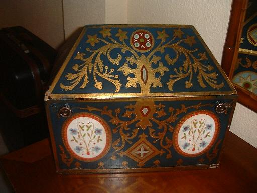 ベッドヘッドの模様がスペインっぽい/お揃い模様の小物入れ