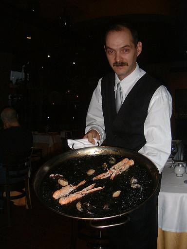私がテーブルの上に置いていた切抜きを見て オーダーを取りに来たおじさんが大興奮。 写真の彼をひっぱって来ちゃったんです(笑) その後も、テーブル担当でもないのに 写真と同じにしろと要求する同僚たちに パエリア鍋を持たされて、写真を撮られる彼。 みんなは、背後でひゅーひゅー冷やかしまくり(^n^) 切抜きを持って行ったのは、間違いなく イカ墨パエリアを頼むためだったんですが 思いがけなく楽しいオマケがつきました〜♪ Ramon Trias Fargas, 2 Platja de la Barceloneta 13:00-16:30, 20:00-23:30 |