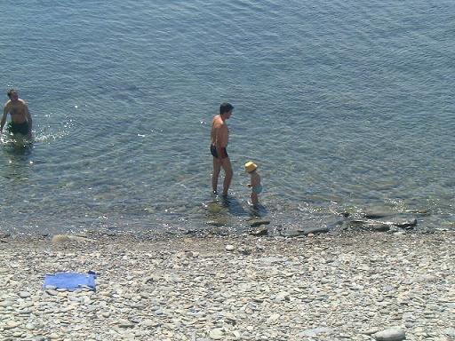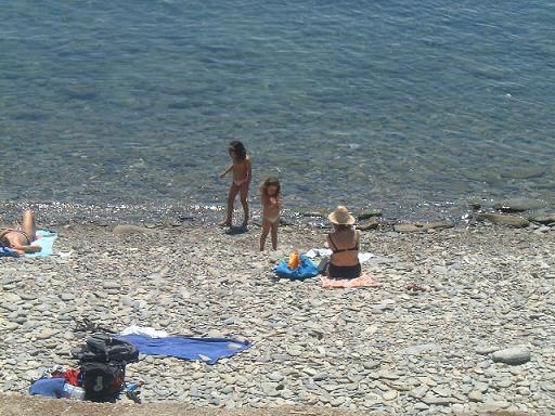ビーチの家族連れ。ちっちゃい子、かわいーーー♪