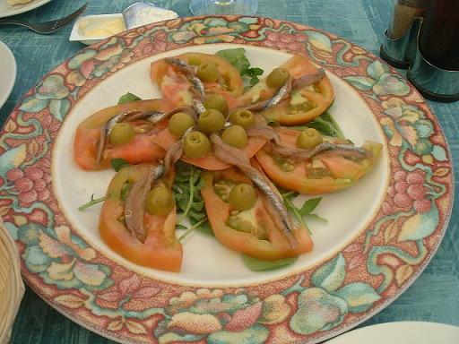 魚介のパエリア/トマトとアンチョビのサラダ。どっかでも食べたな・・・